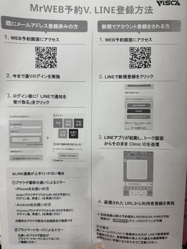 ご自身でできる方は、来院前にアドレスだけでも登録しておいていただけると、次回から切り替えられます。